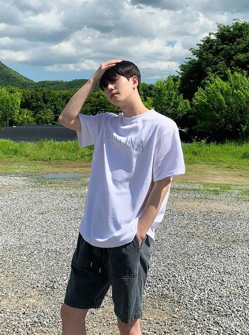 白色短袖T恤+藍色工裝牛仔短褲,簡單塑造干凈潮男