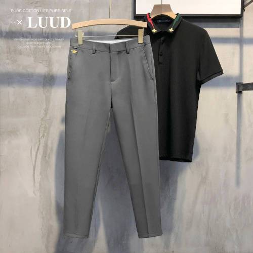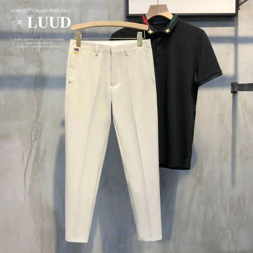 一談到經(jīng)典搭配,想到的自然是黑白灰3色搭配,你猜對了,這3款搭配就是3色混搭,上圖為白色短袖polo衫搭配黑色九分休閑西褲,polo衫的翻領(lǐng)上金色小蜜蜂刺繡,以及閃電印花,讓這件polo衫更加時(shí)尚潮流,獨(dú)具個(gè)性化。腳上搭配一雙黑色的豆豆鞋就可以嘍~喜歡的粉絲們,趕緊搭配一套吧!
