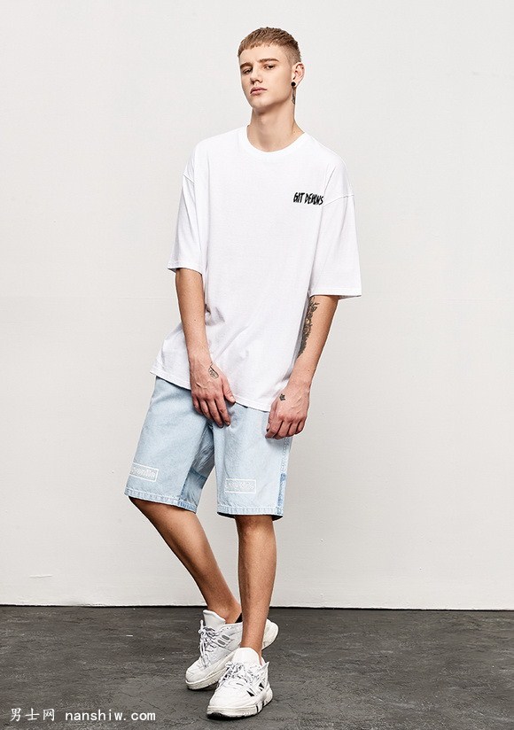 白色也是男人衣櫥中必不可少的單品,白色T血衫干凈百搭,顯得人更白凈。牛仔短褲,小白鞋是最適合不過的穿搭。青春氣息中透露著一種對生活的向往和熱愛。