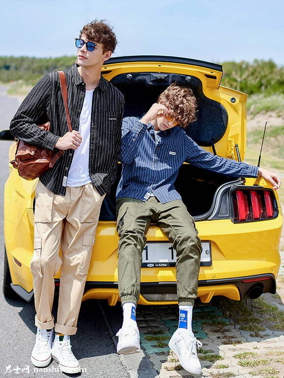 韓版潮流寬松襯衣+工裝褲+小白鞋,給人慵懶的視覺感受,綻放青春活力的帥氣形象。復(fù)古條紋,讓青春也成為了經(jīng)典。
