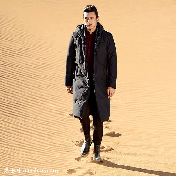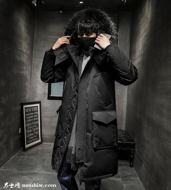 白鴨絨的羽絨服在保暖性能上非常高,而且也很輕便,而這款白鴨絨長款羽絨服搭配黑色修身褲就非常有男人味,具備時尚的氣息,提高男士整體的氣度。