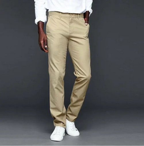 Chino褲面料耐磨,顏色耐臟,顏色豐富多樣。它具有很好的舒適性,但是搭配起來容易出現(xiàn)平淡無奇的效果。它中規(guī)中矩,不夠有型,雖然普遍,但存在感確實(shí)不高。卡其褲是型男日常造型的首選單品之一,雖然卡其褲看起來很單調(diào),但依舊能打造出多種的風(fēng)格。稍微直筒寬松或者錐形的款式,它的接受范圍廣泛,對于腿粗或者腿較瘦的伙伴都能駕馭,而且不會容易把搭配缺點(diǎn)露出來。