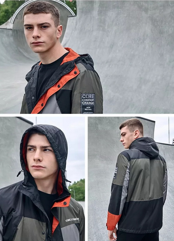撞色運(yùn)動(dòng)連帽薄外套簡(jiǎn)潔利落線條勾勒身形,多色塊拼接設(shè)計(jì),亞光黑色配以一抹橙色提亮,如同平淡生活中的高光時(shí)刻一掃冬日陰霾。彰顯環(huán)保理念的同時(shí)帶入運(yùn)動(dòng)風(fēng)細(xì)節(jié)點(diǎn)綴,沖鋒衣也不必千篇一律。