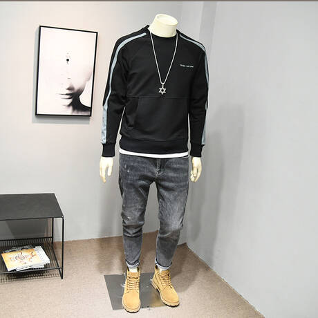 拼色袋鼠兜圓領衛(wèi)衣3色,