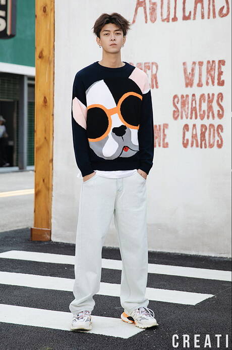 打造溫暖花美男,UOOHE藏青色毛衣