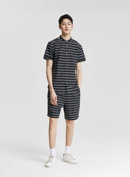 MECITY撞色橫條紋印花立領(lǐng)純棉短袖襯衫,89元包郵2020-06-17
