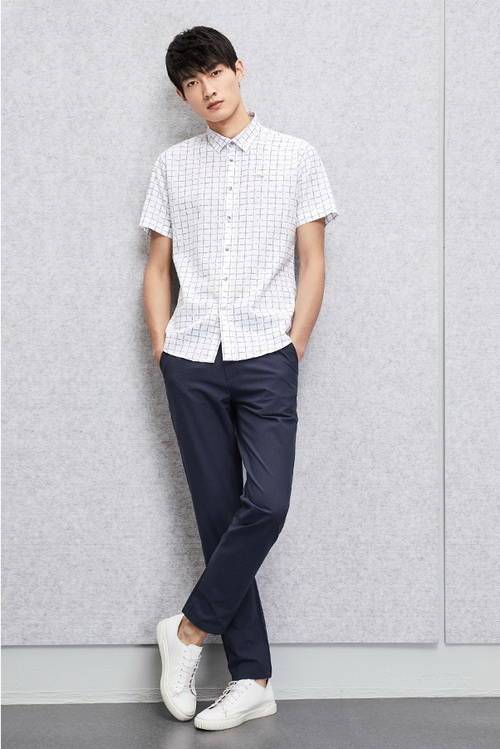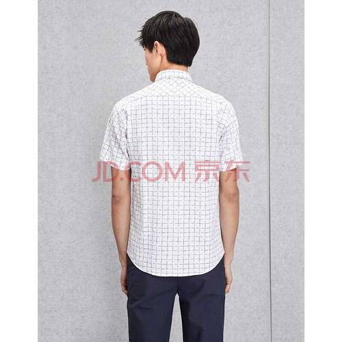 HLA海瀾之家白格紋亞麻布短袖襯衫,券后49元包郵2020-06-30