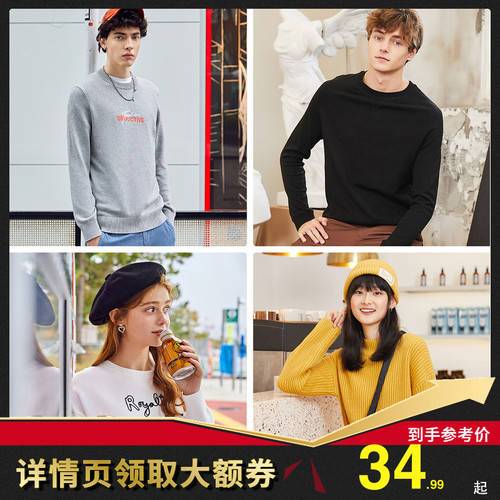 森馬男女圓領(lǐng)套頭毛衣多款,大額券+淘金幣后32.45包郵2020-10-13