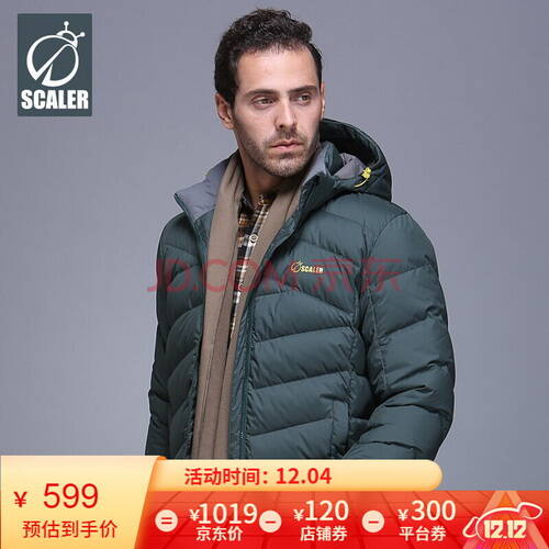 4號(hào):思凱樂SCALER戶外冬季連帽鵝絨羽絨服情侶款,券后599包郵2020-12-03