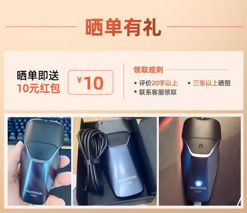 飛科智能電動剃須刀,1小時快充,Type-C充電線,39包郵(曬單返10元)2020-12-15