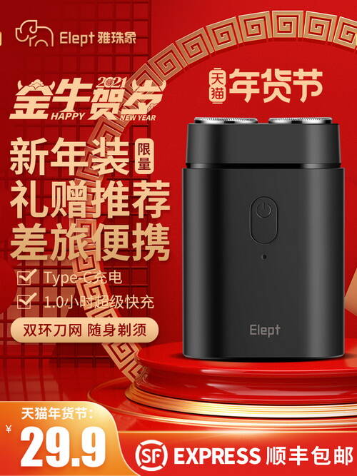 【順豐包郵】雅珠象1小時快充迷你電動剃須刀,29.9起包郵2021-01-20