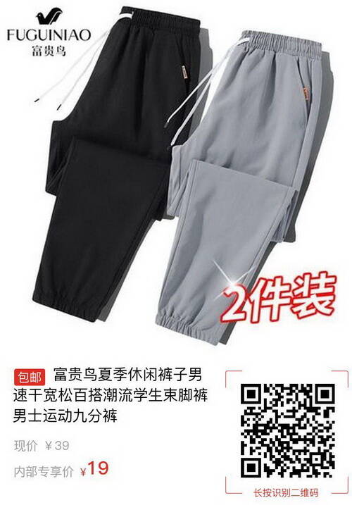 【pdd】富貴鳥速干束腳褲18款,券后19起包郵2021-03-19