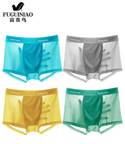 【tm】富貴鳥冰絲男士平角透明內(nèi)褲4條裝,券+淘金幣后27.45包郵2021-03-21