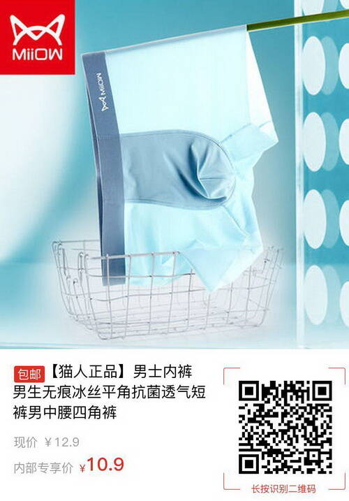 【pdd】貓人無痕冰絲內(nèi)褲,抗菌透氣9款,券后10.9包郵2021-03-25