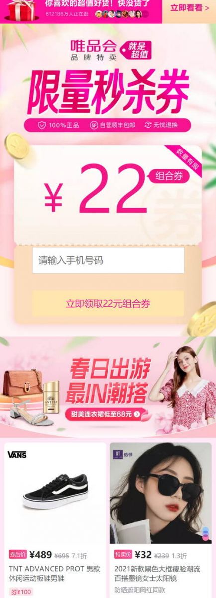 【vip】唯品會限量秒殺券:22元組合券2021-04-08
