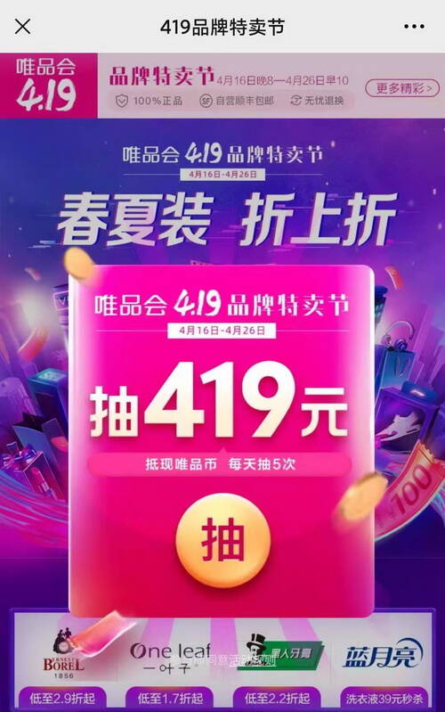 【vip活動(dòng)】419品牌特賣(mài)節(jié)超級(jí)紅包:抽419元紅包,每天5次2021-04-15
