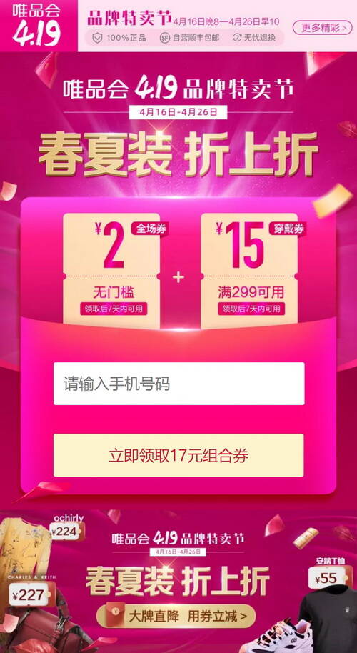【vip活動(dòng)】唯品會(huì)17元組合優(yōu)惠券免費(fèi)領(lǐng)2021-04-15