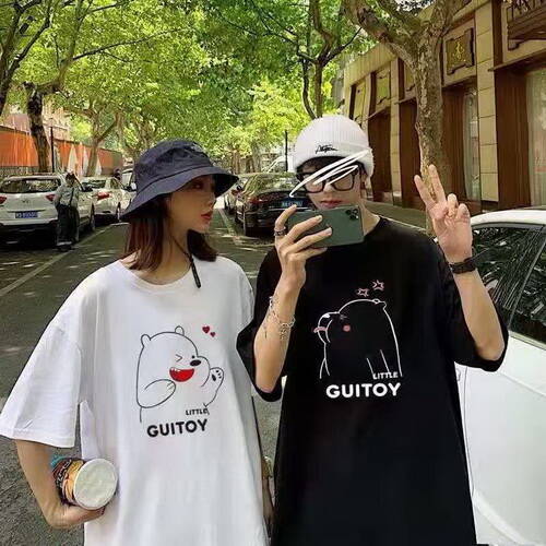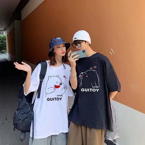 【pdd】林蕓商貿(mào)情侶寬松長(zhǎng)款卡通短袖T恤黑白2款,券后12.9包郵2021-04-26