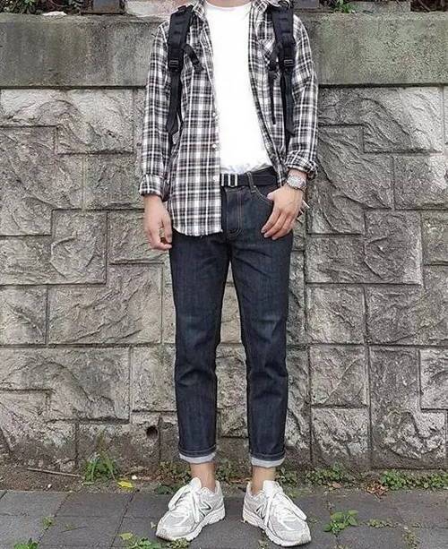 在選擇褲子時,一定要注意褲子的長度,如果褲子過長,已經堆在鞋面上了,那就會顯得整個人沒有精神,而且腳踝處有大量堆積的褶皺,就讓人覺得視覺向下移,從而讓人覺得你不高。