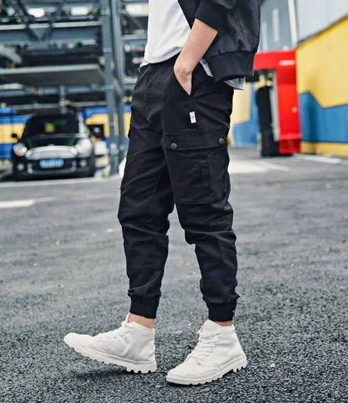 除了上面說過的九分褲以外,這種工裝收腿褲同樣是很好的選擇,這種收腿褲一般長度不會過長,也剛好到腳踝左右的位置。而且收緊的褲腳部位,可以很好的勾勒出腳踝附近的纖細,同樣具有顯腿長、顯腿瘦的功效。