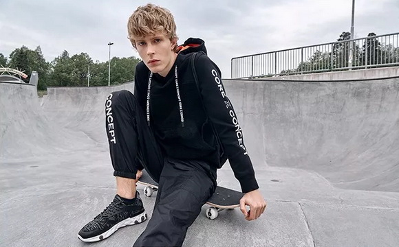 前側(cè)袋鼠口袋,字母抽繩上使用醒目印花設(shè)計,以對細(xì)節(jié)的關(guān)注反應(yīng)功能性獨特考量。以標(biāo)識性口號印花【CORE X CONCEPT】表達(dá)對循環(huán)經(jīng)濟(jì)和再利用理念的聲援。這個秋天,用穿在身上的環(huán)保態(tài)度秀出己型!