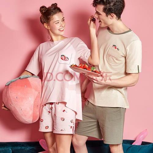 【甜蜜水果系列】大樸草莓情侶短袖睡衣套裝,券后119元包郵2020-06-30