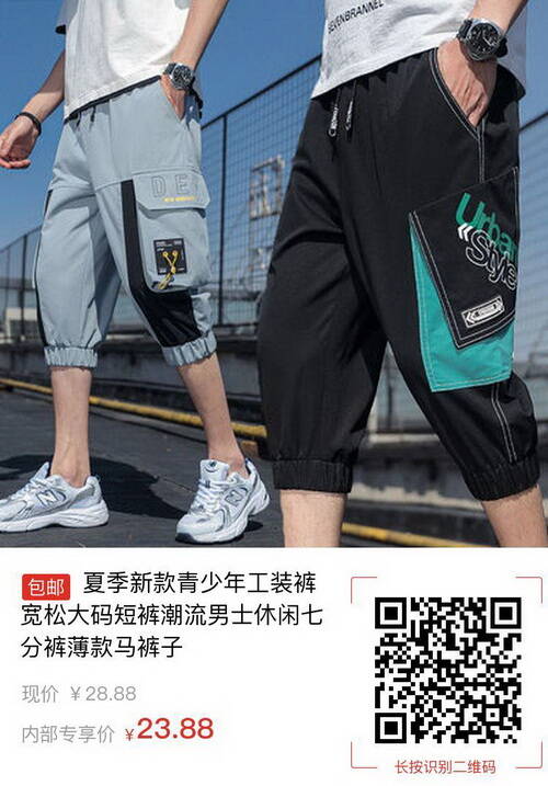 【pdd】憶苒七分束腿工裝褲21款,券后23.88包郵2021-04-27